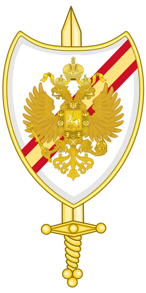 Foto: Existuje přesvědčení, že Skosyrev chtěl v Andoře etablovat vládu ruské dynastie, která by nabízela širší možnosti rovněž ruské protibolševicky a monarchisticky orientované emigraci. Na obrázku znak „bílých“ ruských dobrovolníků, bojujících za španělské občanské války let 1936-39 na straně nakonec vítězných nacionalistů. Patrně jen za výsledek souhry jiných okolností můžeme považovat fakt, že sám Skosyrev (kterého fakticky Španělská republika, jakkoliv tehdy zrovna pod vládou pravice v Madridu, zbavila jeho nabyté moci v Andoře) se ve Francii ocitl mezi internovanými cizinci společně s poraženými v tomto španělském konfliktu. | Wikimedia Commons