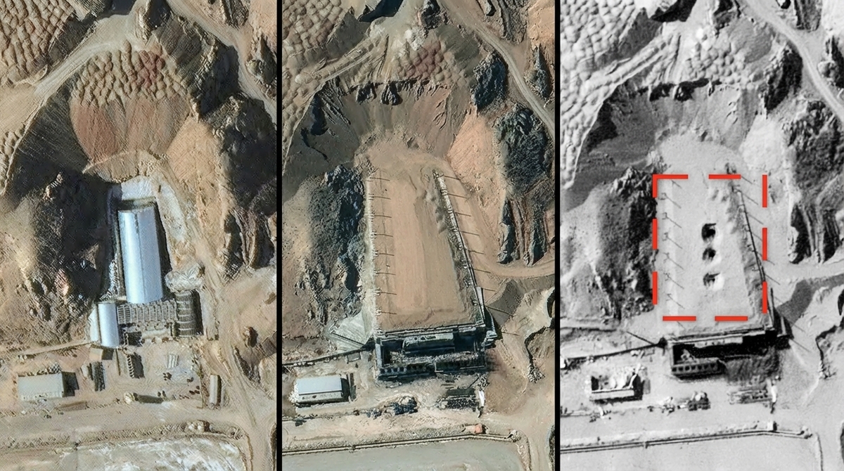 Satelitní snímky ukazují zásah objektu Taleghan 2 v íránském vojenském komplexu Parchin, který je dlouhodobě spojován s íránským jaderným programem. Na záběrech jsou patrné tři velmi velké impaktní body v řadě na vrchní části zpevněné struktury.