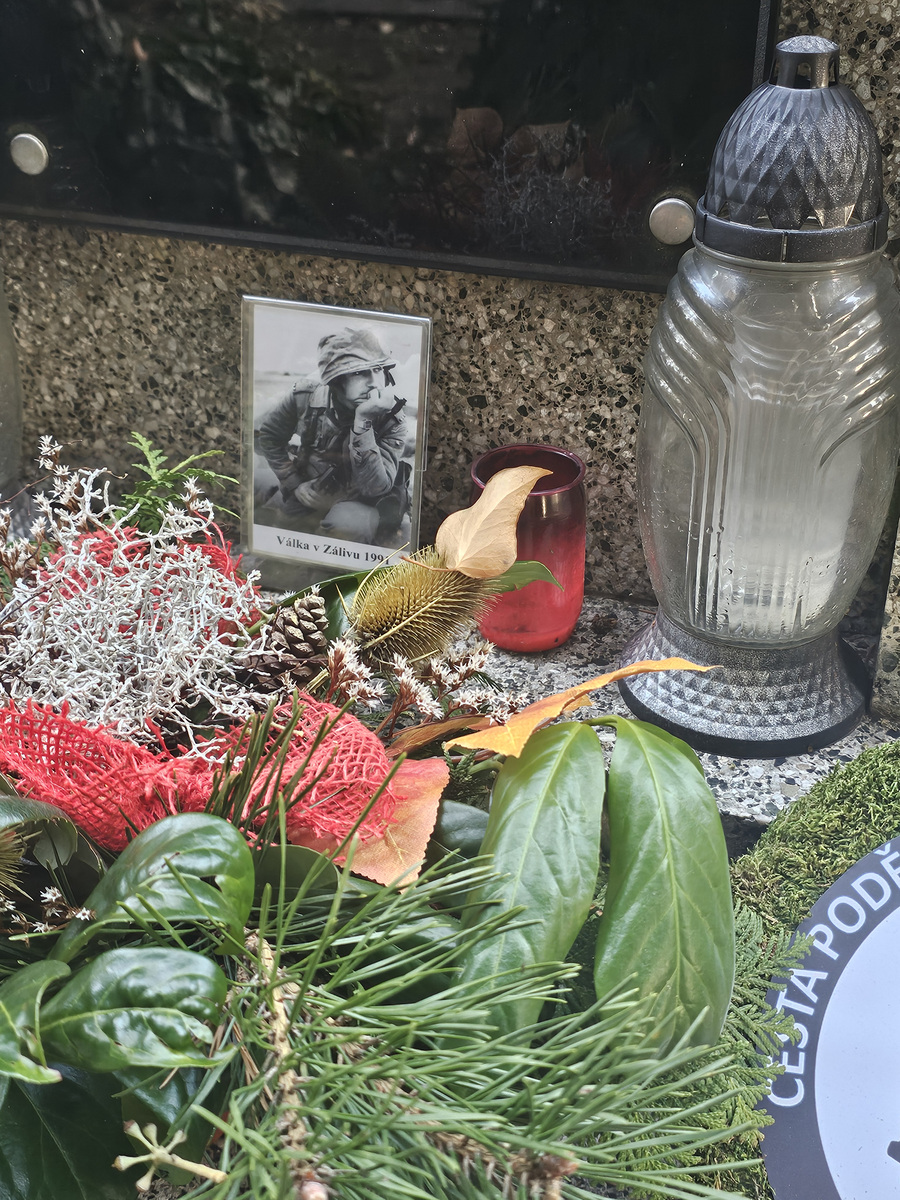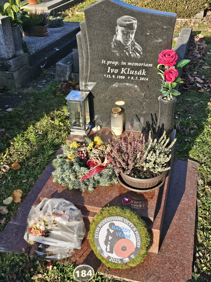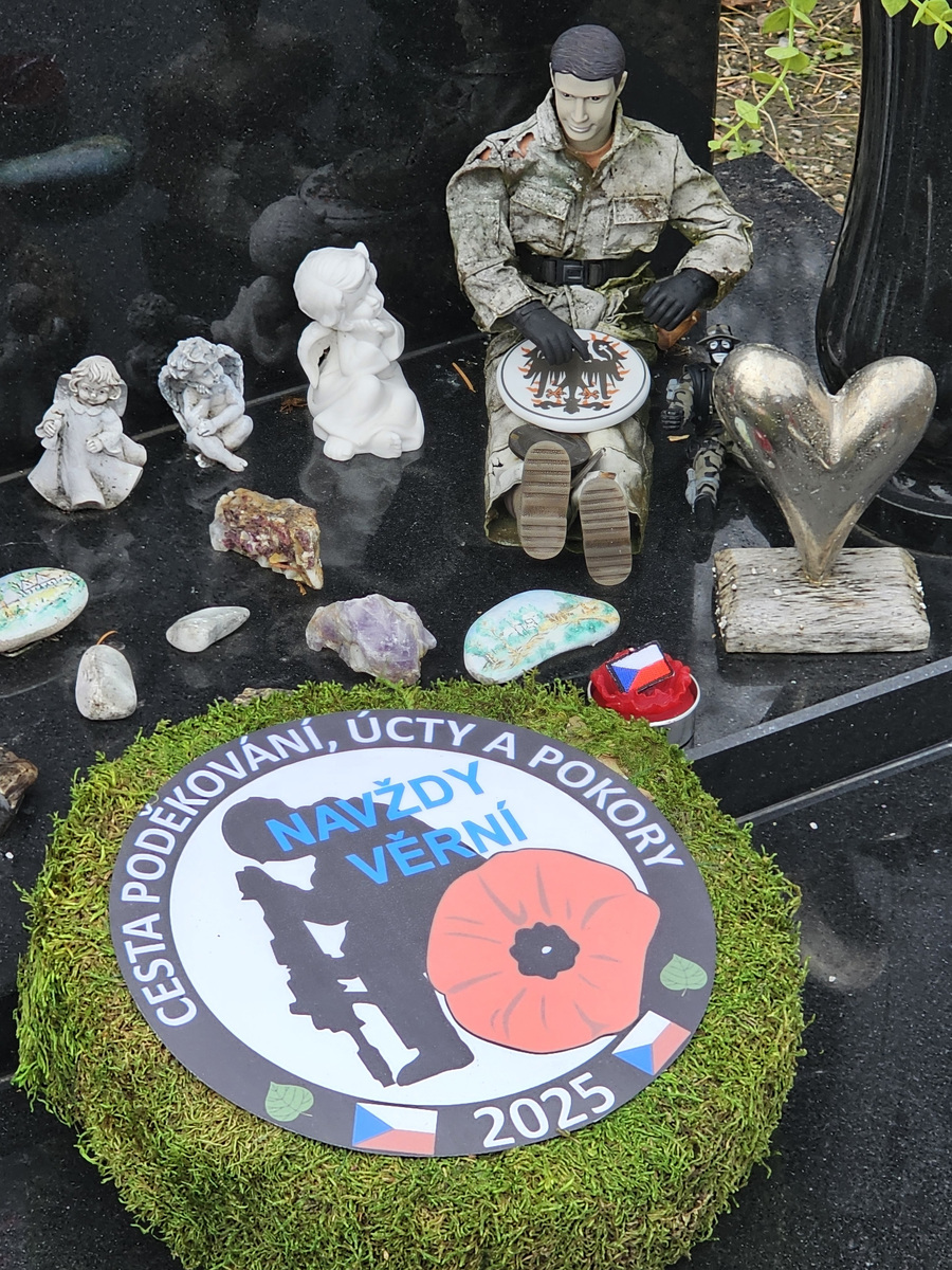 Hrob v Jičíně působí prostě, klidně. U náhrobku drobný detail – nášivka s nápisem „Foxtrot“, jméno čety, ve které Ivo Klusák sloužil. Symbol, který pro zasvěcené znamená víc než jen těch sedm písmen. Svíčka, krátká modlitba a ticho, které se mezi poutníky šíří přirozeně. Každý z nich si nese vlastní myšlenku, vlastní vzpomínku.