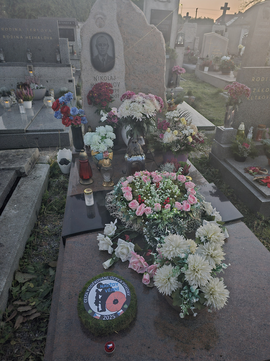 Místo, kde se příběh odvahy vrací domů. Den se chýlí ke konci ve Štěnovicích, u hrobu podpraporčíka in memoriam Nikolaje Martinova. Slunce se ztrácí za obzor, poslední paprsky se opírají o pomník a na chvíli rozsvěcují jeho jméno v zlatém světle.
