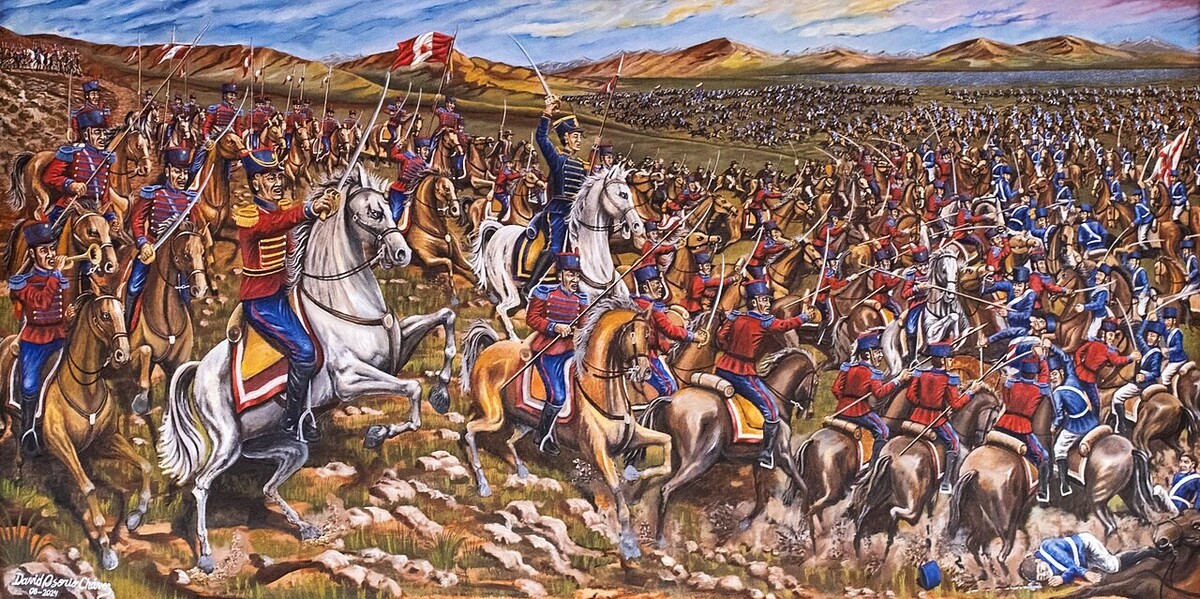 Foto: Výjev znázorňující útok Husarů Peruánské legie (posléze tzv. Junínských husarů) v bitvě u Junínu z 6. srpna 1824. Jedná se o jednotku, na jejímž vzniku měl Miller důležitý podíl. | Wikimedia Commons / Public domain