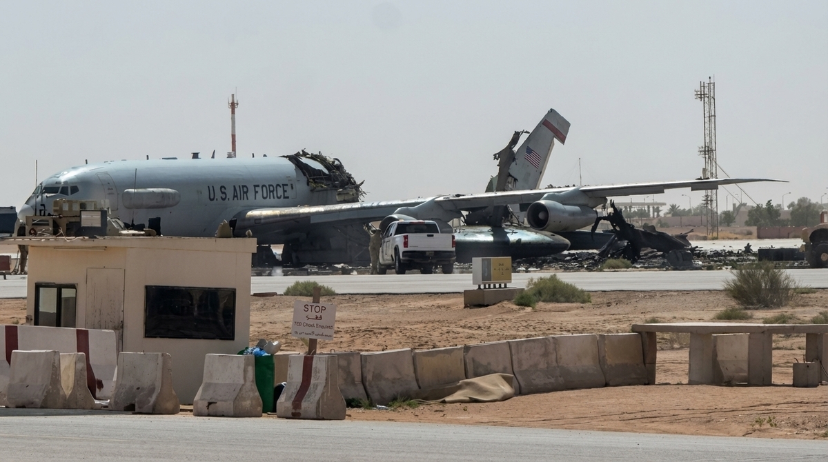 Foto: Zničený americký letoun AWACS na letišti v Saudské Arábii | Telegram