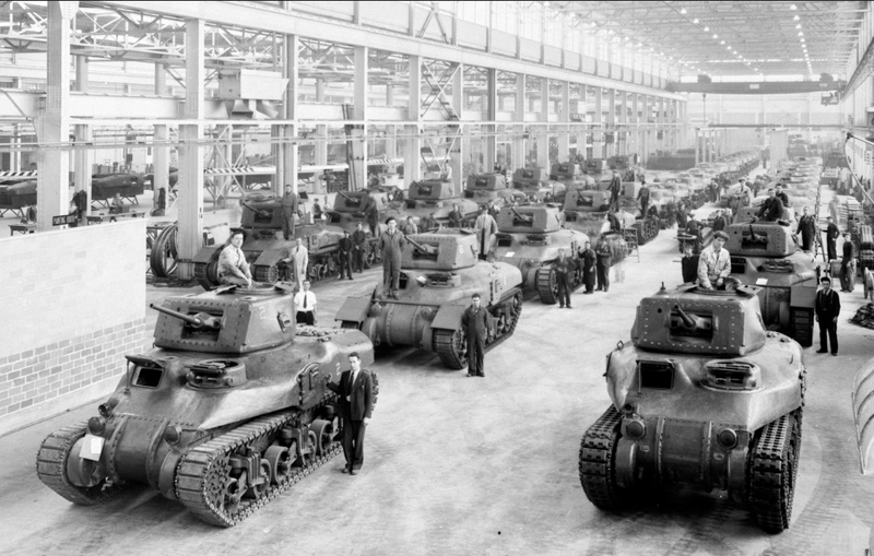 Foto: Výroba tanků Ram I. Tank v sobě nesl prvky americké, britské i francouzské tankové školy. | Wikimedia Commons / Public domain