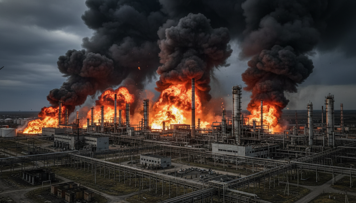 Foto: Rafinerie po ukrajinsém útoku | Telegram