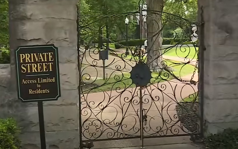 Podstatná informace, která se z některých článků a reportáží vytratila, je fakt, že protestanti poklidně nepochodovali po veřejné ulici, nýbrž po soukromém pozemku právě onoho manželského páru. Dle dostupných informací demonstranti vnikli na soukromý pozemek manželů McCloskey, aby si zkrátili cestu k domu starostky. Pozemek byl přitom ohraničen zdí a bránou spolu s označením „soukromá ulice, vstup povolen pouze rezidentům“.