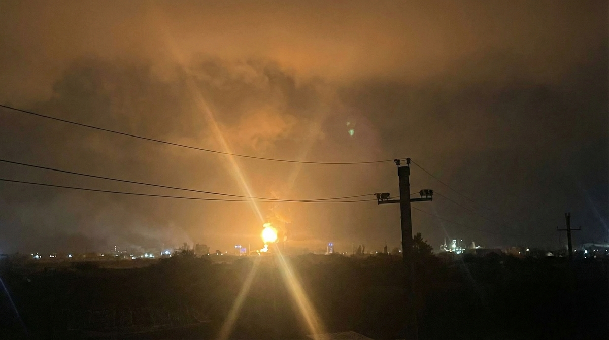 Noc plná plamenů: Drony zasáhly rafinerii u Krasnodaru, hořela nádrž s ropnými produkty