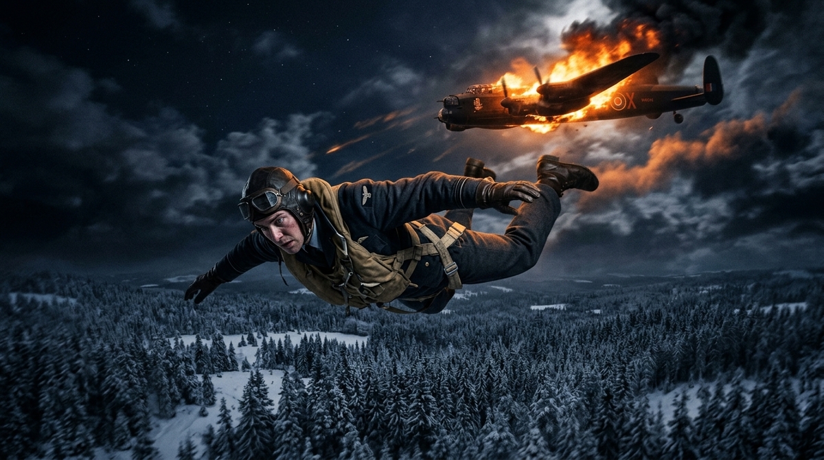 Foto: Přežil pád z 5,5 kilometru bez padáku. Příběh střelce RAF Alkemadeho | ChatGPT / OpenAI
