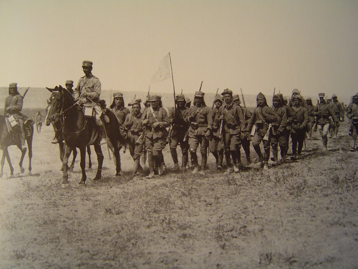Foto: Postup řecké pěší divize stepní krajinou v centrální Anatólii. Snímek pochází se srpna 1921, zhruba z doby před bitvou na řece Sakarya. | Wikimedia Commons / Public domain