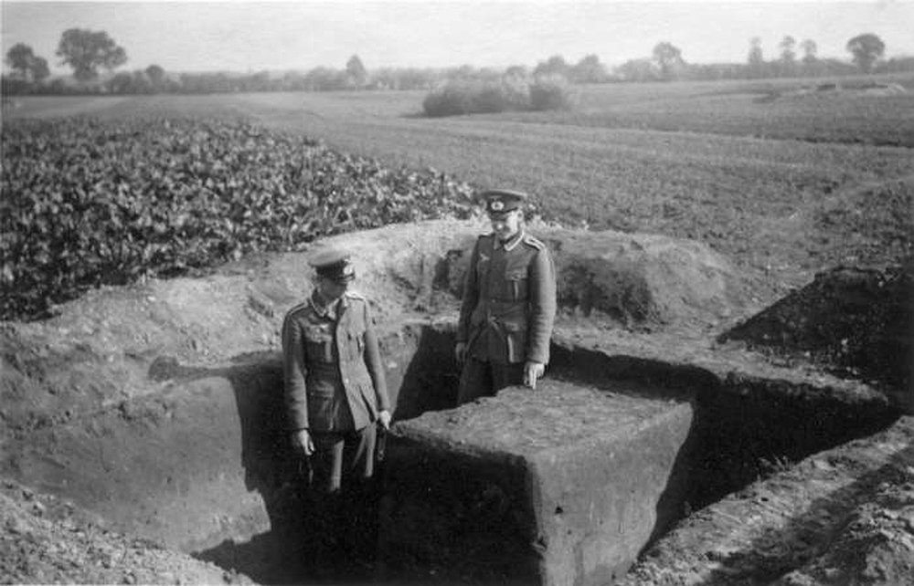 Foto: Němečtí poddůstojníci v okopu pro těžký kulomet na Jižní Moravě (archiv J. Lakosil - T. Svoboda)