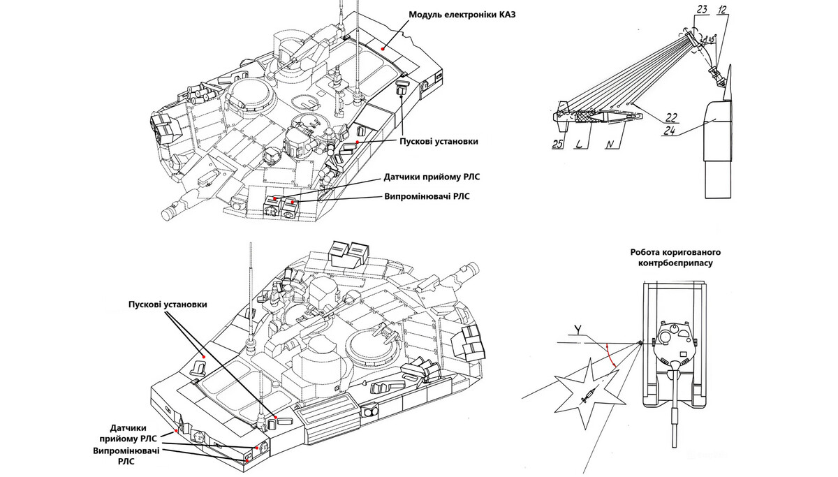 Foto: Schéma instalace a principu činnosti systému Arena-M v tanku T-90M | Telegram