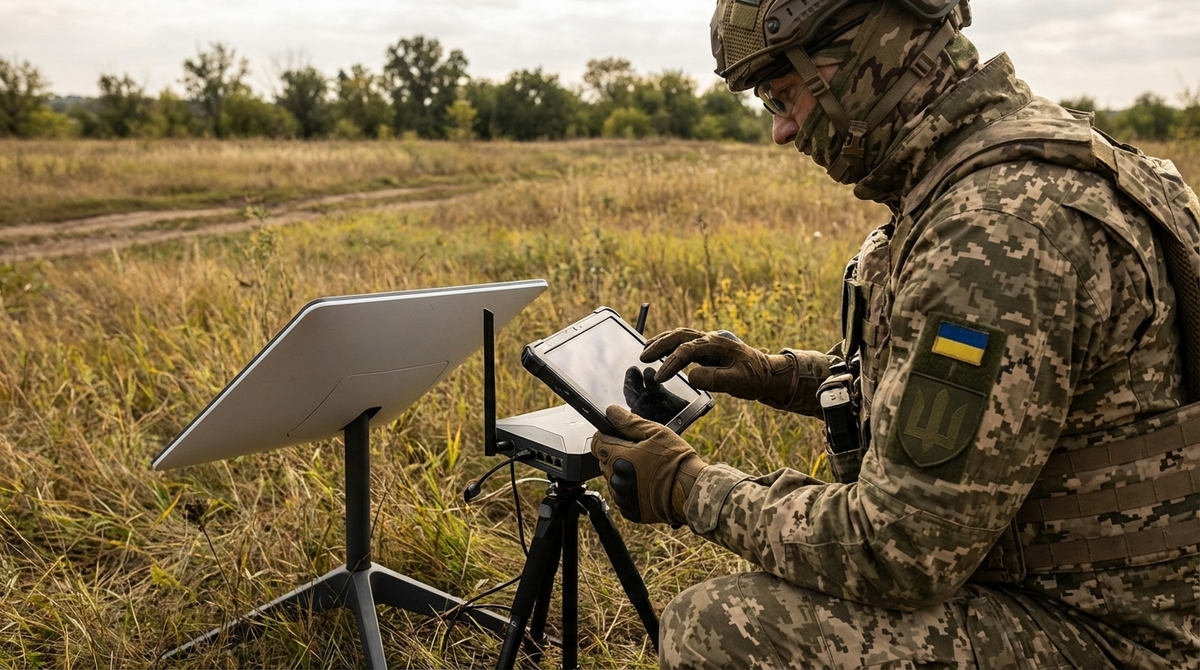 Foto: Ukrajinský voják s terminálem Starlink | Telegram