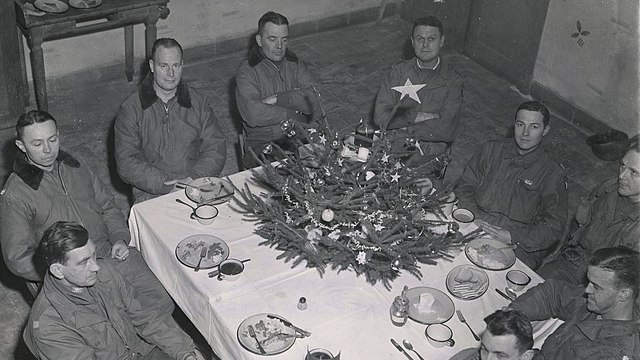 Foto: Štědrovečerní zázrak v Ardenách: Jedna rodina, američtí a němečtí vojáci u jednoho stolu | Wikimedia Commons / Public domain