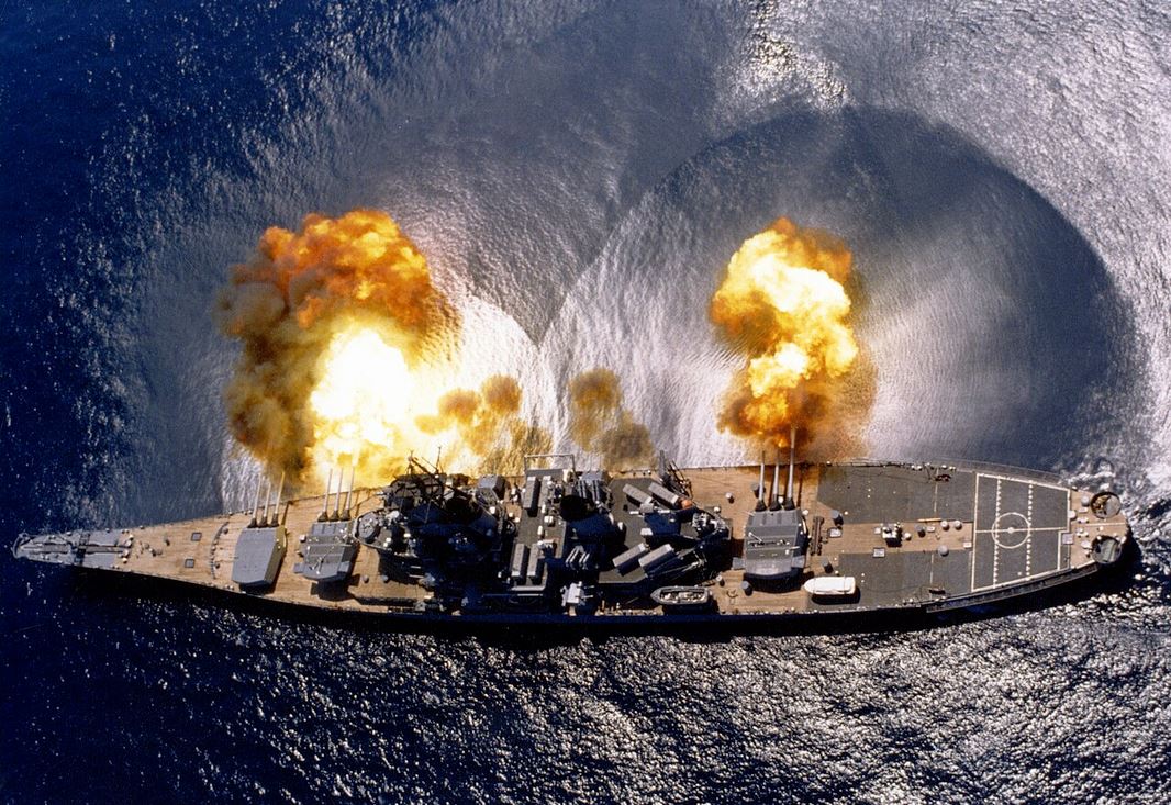 Foto: Boční salva bitevní lodi Iowa v roce 1984 | Phan J. Alan Elliott / Public domain