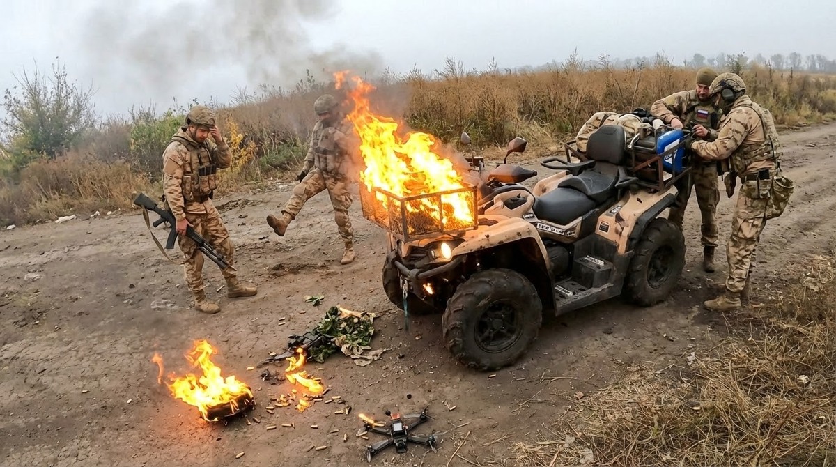 Foto: Zásah čtyřkolky FPV dronem | Telegram