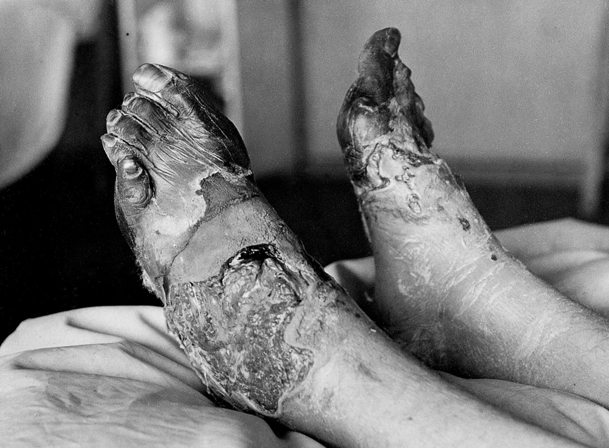 Foto: Nekróza na chodidlech - 4. fáze zákopové nohy | Wikimedia Commons / Public domain